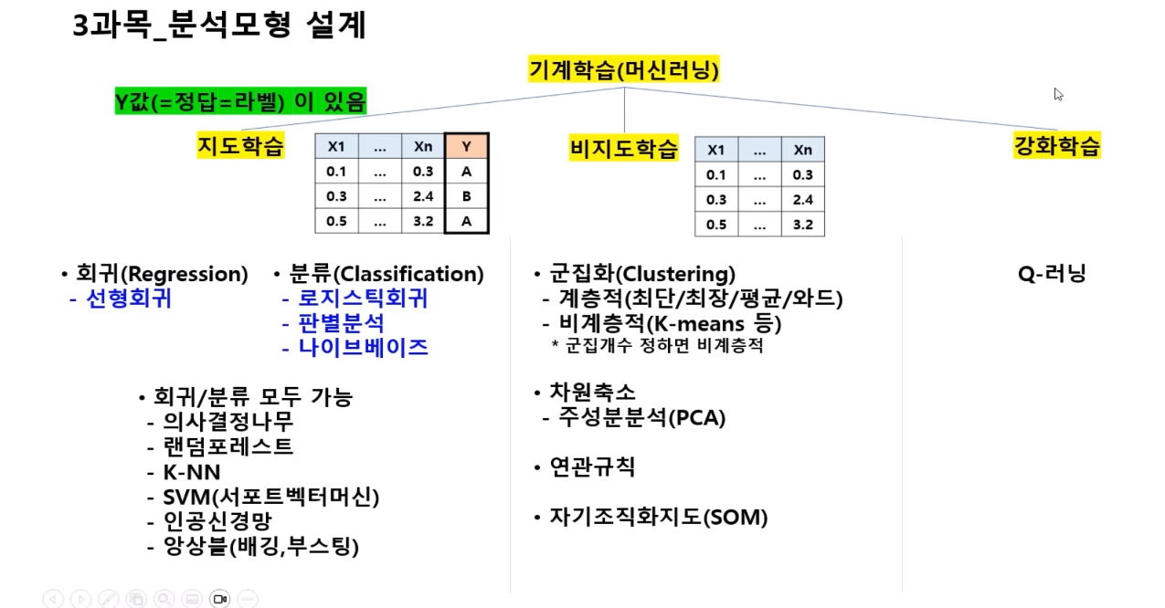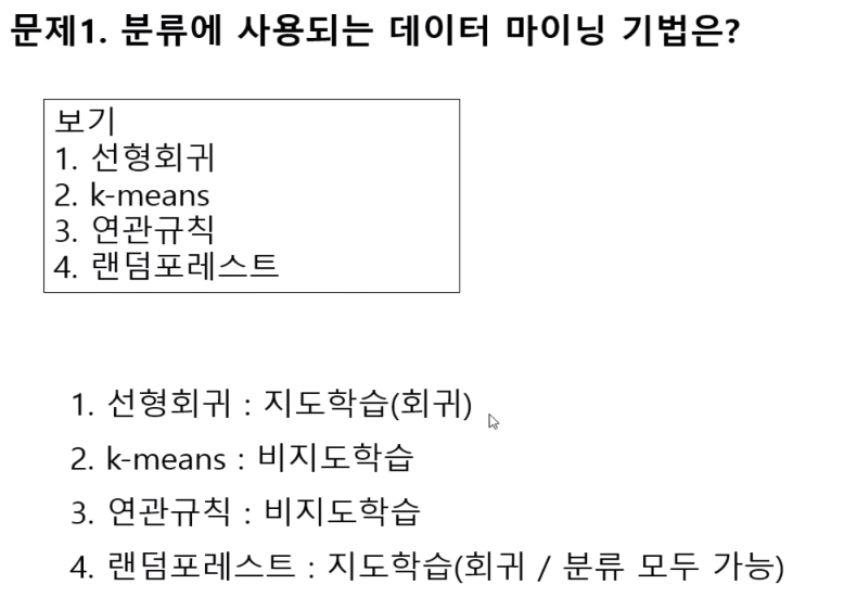 문제에 회귀 가능 모델, 분류 가능 모델 고르는 문제 나옴