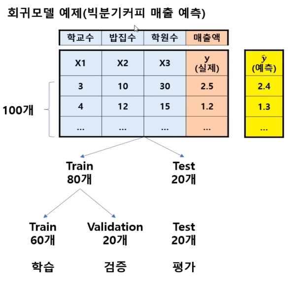 독립변수(하늘색)로 종속변수(주황색)를 예측한다.